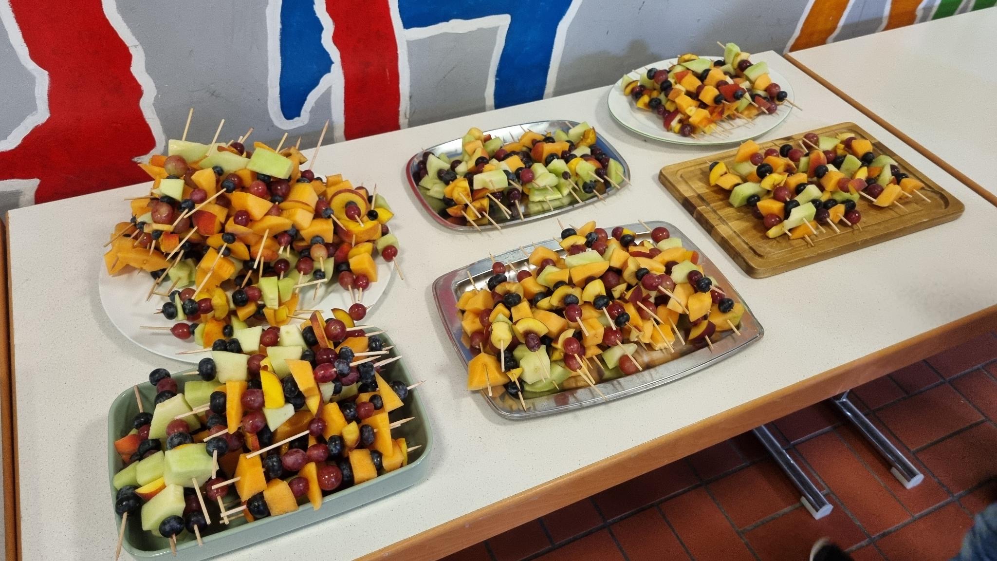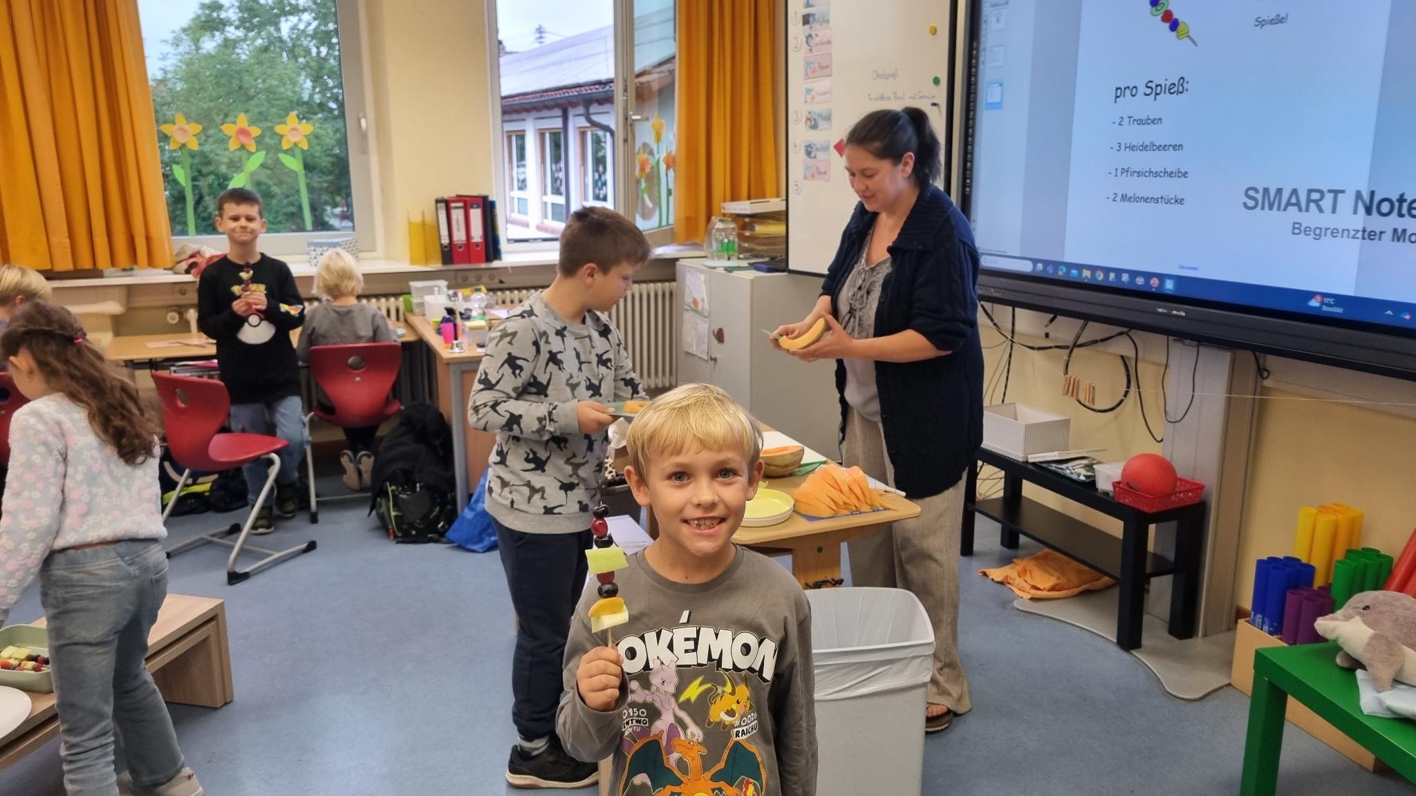 Die Drittklässler hatten großen Spaß beim Schnippeln und Garnieren und waren mächtig stolz angesichts vieler strahlender Gesichter beim Verteilen. Wie lecker doch gesundes Essen sein kann.